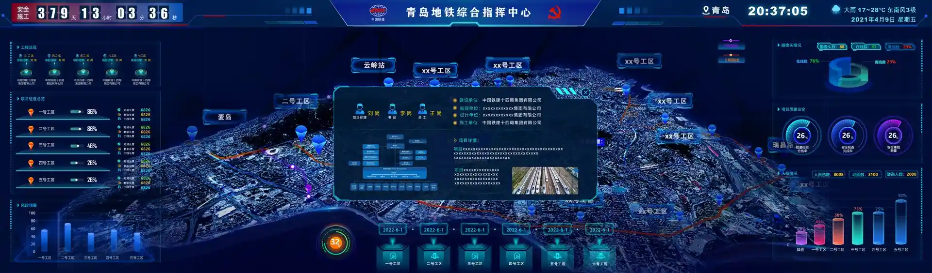 在“数字中国”战略深化与城市轨道交通高质量发展的背景下,青岛地铁作为城市综合交通体系的核心支撑,正加速向“智慧化、精细化、集约化”建设模式转型。面对青岛地铁多线路并行、多工区协同、施工场景复杂(如沿海高湿度环境、地下管线密集区等)的建设挑战,传统的“分散式管理+人工巡检”模式已难以满足高效协同、安全管控与进度把控的需求。
